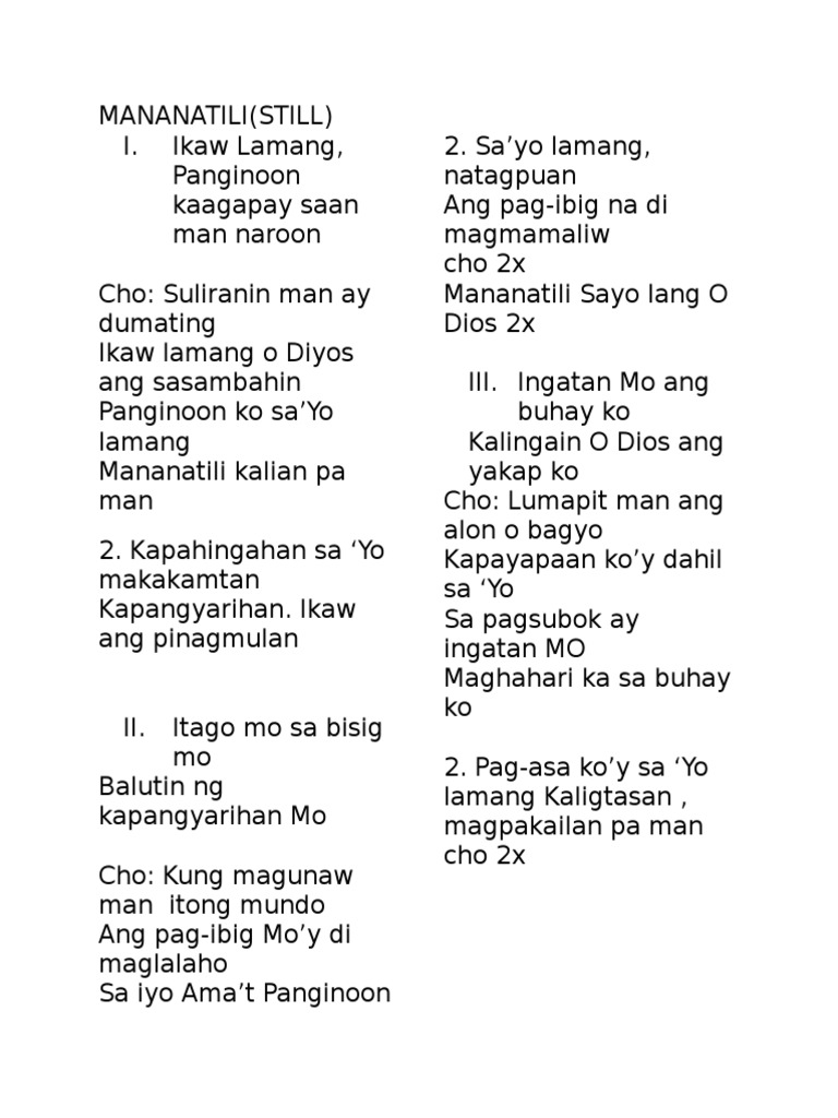 Because thats the essence of accepting God. Sayo ay susunod laging maglilingkod Sayo lang Sayo lang aking Hesus Verse I again Sayo ay susunod Laging maglilingkod Buong buhay koy alay lang Sayo. Patina sa aking mga panaginip.
