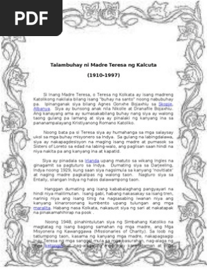 Talambuhay Madre Teresa Ng Kalcuta Pdf