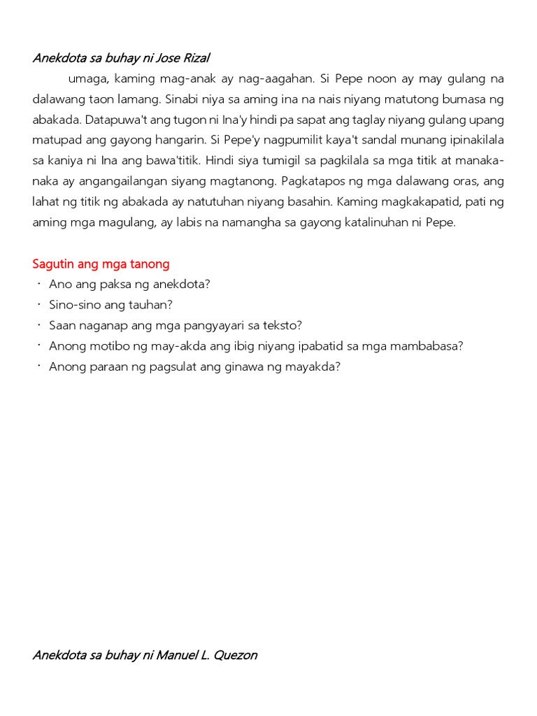 Anekdota Sa Buhay Ni Jose Rizal Pdf