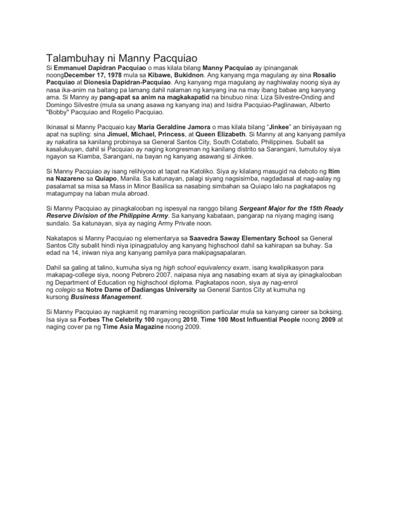 Abstrak Tungkol Sa Buhay Ni Manny Pacquiao