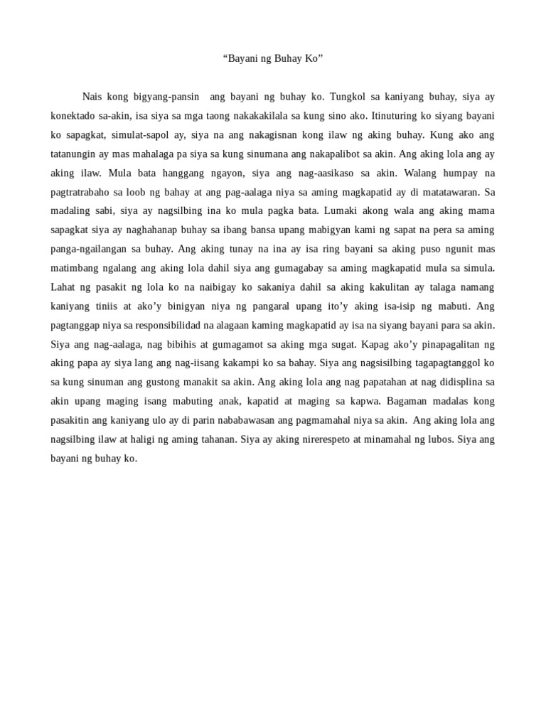 Bayani ng KahaponSulat ni Danica Parra. Ang aking inaniy sambukiring palay. Ilan sakanila ay ang ating mga magulang na ginagawa ang lahat ng mga bagay upang maging mabuti at tuwid ang landas ng ating tinatahak.