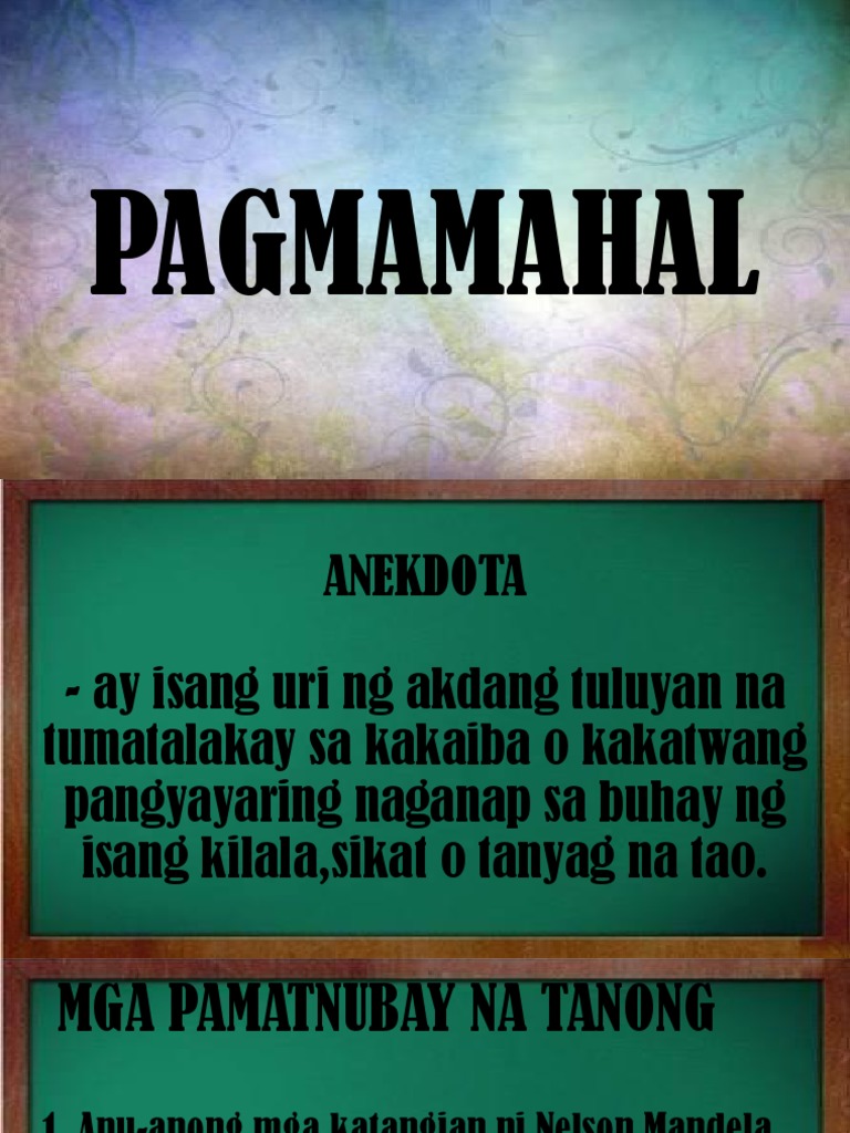 Ang buhay ng tao parang kuryente rin yan di natin alam kung kailan may interruption para mas lumiwanag. Ako marahil ay isang mahirap lamang subalit taglay ko ang katangiang masasabi kong aking pinakamahalagang kayamanan. Tinuruan nga ng ama ang bata ng higit na mataas na pagpapalipad ng saranggola pati na ang pagpapatagal niyon sa kalawakan.